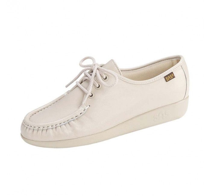 The classic SAS Fiesta leafer shoe wraps soft leather completely around the foot with a genuine moccasin construction. The cushioned inside lining, padded arch, and soft step heel make for a plush feel with every wear. This shoe does not have a removable footbed.
